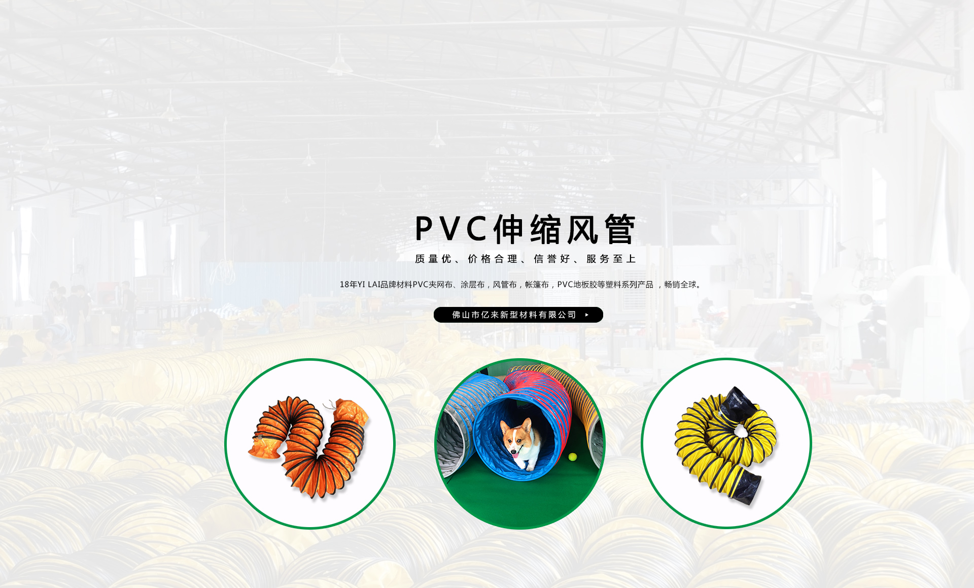 創(chuàng)建“YILAI品牌”近20年來,產(chǎn)品質(zhì)量穩(wěn)定提高,生產(chǎn)及經(jīng)營的產(chǎn)品包括PVC夾網(wǎng)布、PVC彩條布、PVC風(fēng)管布、PVC涂層布、PVC籬笆圍護欄布、PVC透明夾網(wǎng)布、PVC伸縮風(fēng)管、車縫風(fēng)管、寵物管、耐高溫風(fēng)管、地下室通風(fēng)管,保溫通風(fēng)管、空調(diào)排風(fēng)管、正負壓通風(fēng)管、三通/四通排風(fēng)管、防靜電風(fēng)管、隧道風(fēng)管、PVC地板膠等系列產(chǎn)品在市場上得到廣大客戶認可,暢銷歐美、東南亞、非洲、中東等國外市場。